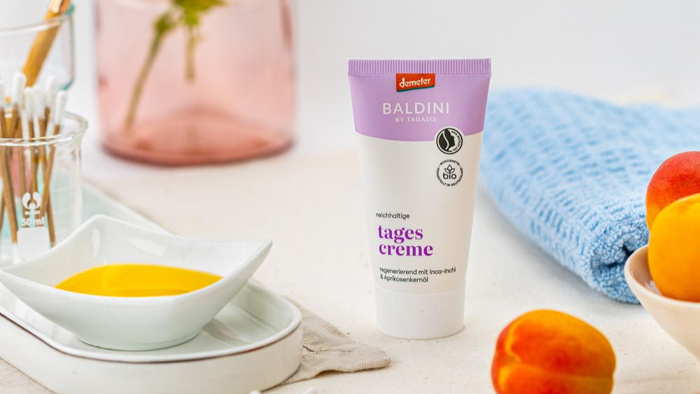 Unsere reichhaltige Tagescreme wurde entwickelt, um deine Haut intensiv zu pflegen und ihre natürliche Barrierefunktion zu stärken. Das enthaltene Aprikosenkernöl, reich an Ölsäure und Linolsäure, dringt in die Hautschichten ein und bietet eine nicht fettende, schnelle Absorption.