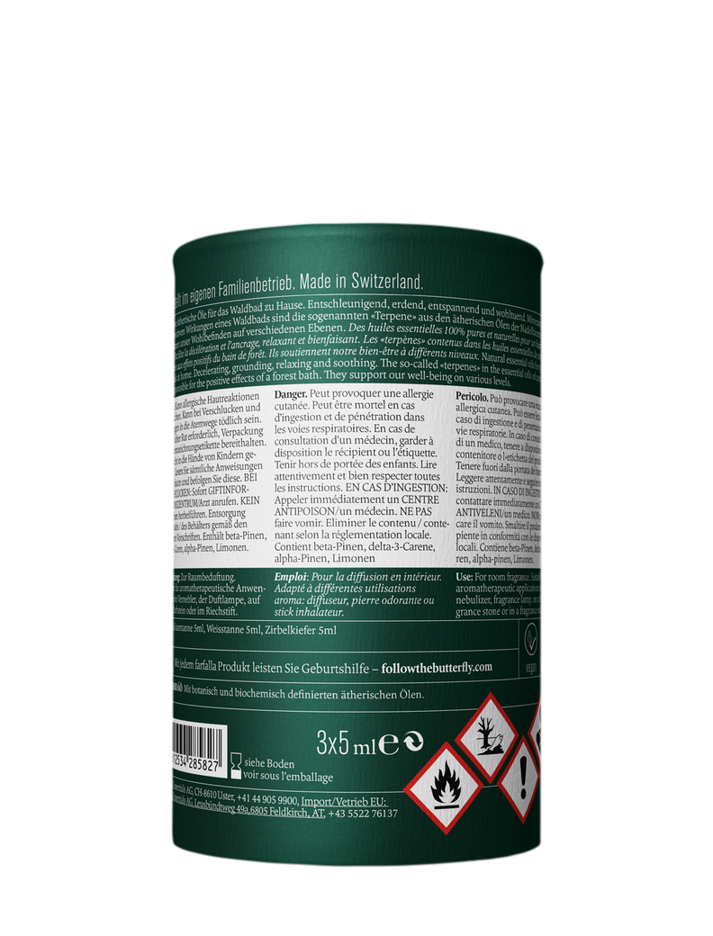 Naturreine ätherische Öle für das Waldbad zu Hause. Entschleunigend, erdend, entspannend und wohltuend.