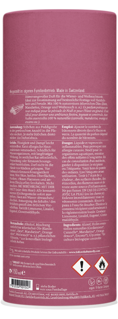 Stimmungsvoller Duft für die Winter- und Weihnachtszeit. Ideal zur Einstimmung auf besinnliche Festtage voll Herzlichkeit und Freude.