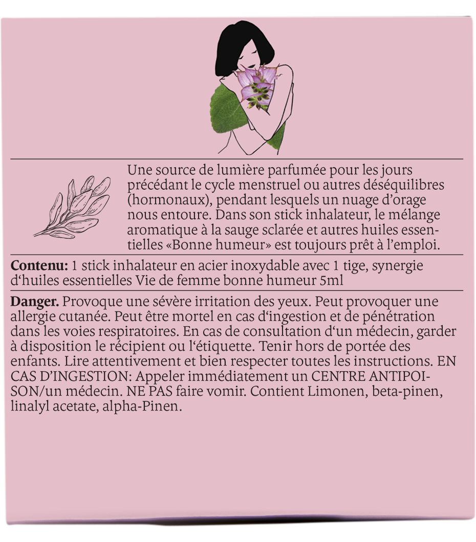 Im praktischen Riechstift ist die Aromamischung mit Muskatellersalbei und anderen stimmungsaufhellenden ätherischen Ölen immer einsatzbereit.