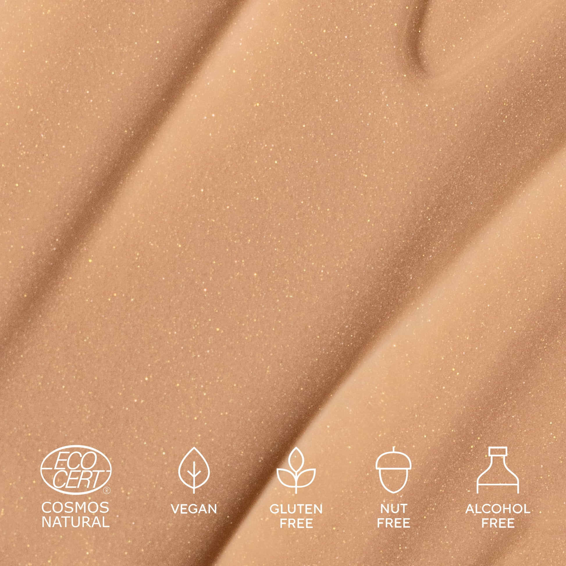 Dieses als Biokosmetik zertifizierte, ultraleichte und getönte Serum verleiht deiner Haut ein frisches, völlig natürliches Strahlen. Die intensiv feuchtigkeitsspendende Formulierung enthält Hyaluronsäure, physiologische Feuchtigkeitsspender und Rotalgen-Extrakt. Es sorgt den ganzen Tag für Pflege und fühlt sich dabei auf der Haut schwerelos an. Das Serum enthält Mineralpigmente und feine, schimmernde Partikel, die nahtlos mit der Haut verschmelzen – freue dich auf eine unsichtbare Deckung und einen sonnengeküssten Glow.