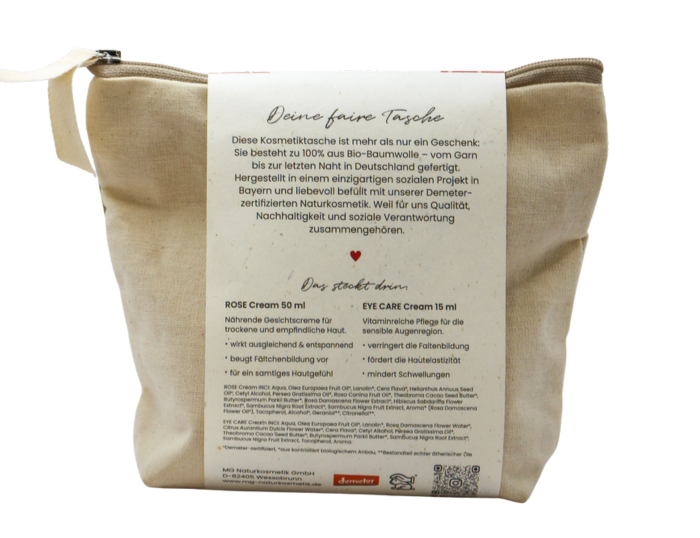 Diese Kosmetiktasche ist mehr als nur ein Geschenk! Sie besteht zu 100% aus Bio-Baumwolle – vom Garn bis zur letzten Naht in Deutschland gefertigt.